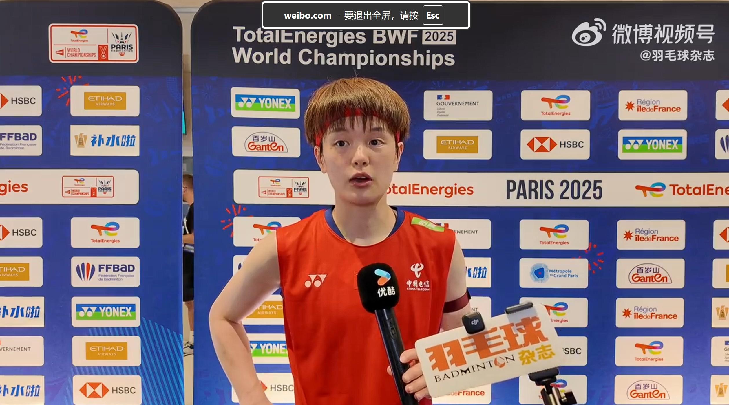 北京时间8月28日,羽毛球世锦赛女单,2号种子王祉怡0-2(19-21、15-21)不敌印度选手辛杜,无缘8强。赛后,王祉怡表示:风向控制上有些犹豫,战术不够果断给了对手机会。